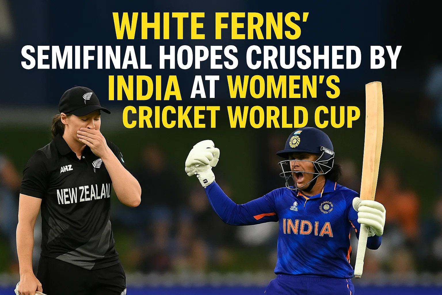 The White Ferns vs India Women’s World Cup 2025 clash at DY Patil Stadium, Navi Mumbai turned out to be a heartbreaking moment for New Zealand cricket fans. With semifinal hopes on the line, the White Ferns needed nothing short of a victory. However, Team India displayed a dominant all-round performance, crushing the Kiwi side by 53 runs (DLS method) and booking their spot in the semifinals alongside Australia, South Africa, and England.